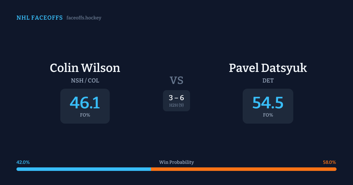 Colin Wilson vs Pavel Datsyuk — Faceoff Head-to-Head