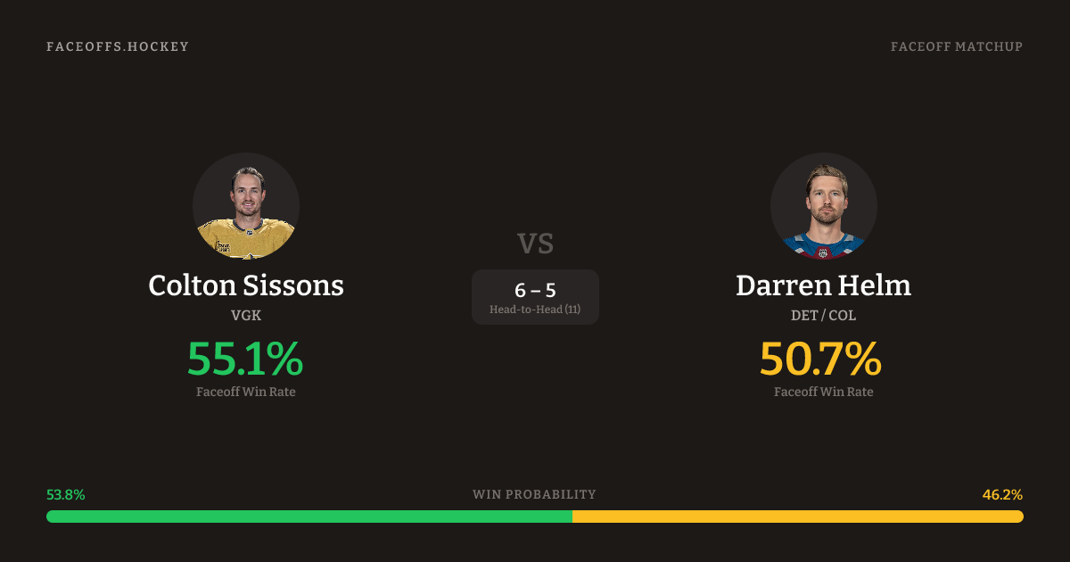 Colton Sissons vs Darren Helm — Faceoff Head-to-Head