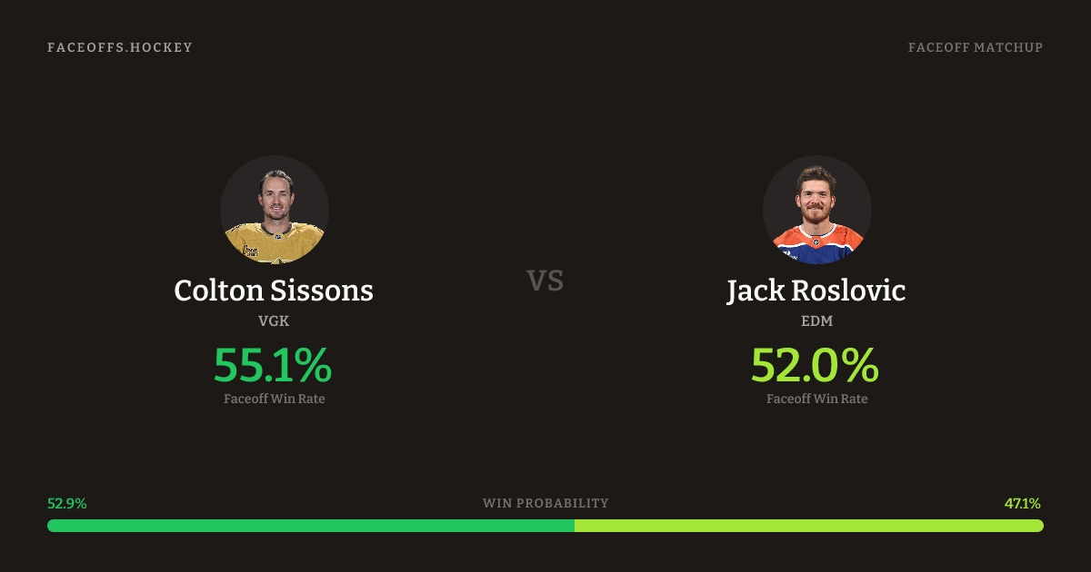 Colton Sissons vs Jack Roslovic — Faceoff Head-to-Head