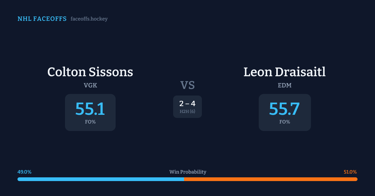 Colton Sissons vs Leon Draisaitl — Faceoff Head-to-Head