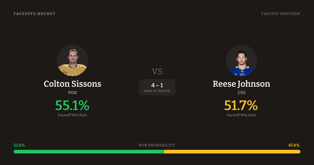 Colton Sissons vs Reese Johnson — Faceoff Head-to-Head