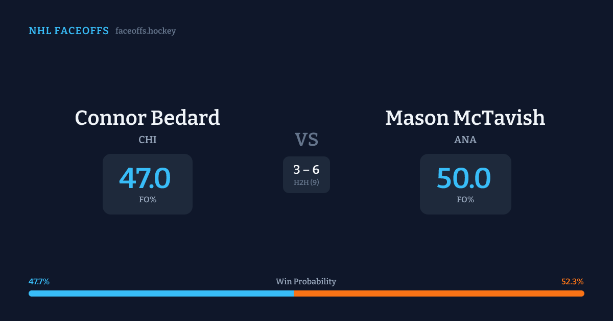 Connor Bedard vs Mason McTavish — Faceoff Head-to-Head