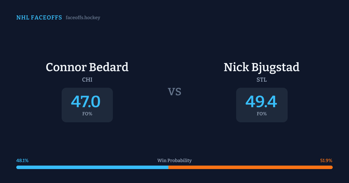 Connor Bedard vs Nick Bjugstad — Faceoff Head-to-Head