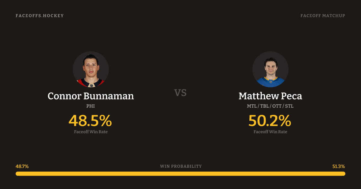Connor Bunnaman vs Matthew Peca — Faceoff Head-to-Head