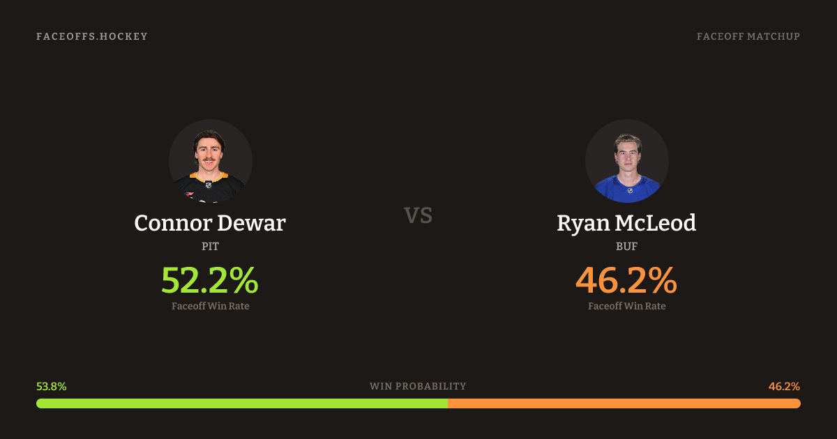 Ryan McLeod holds a +4.0% FO% edge overall. Dewar wins 46.0% vs left-shot opponents — McLeod shoots left.