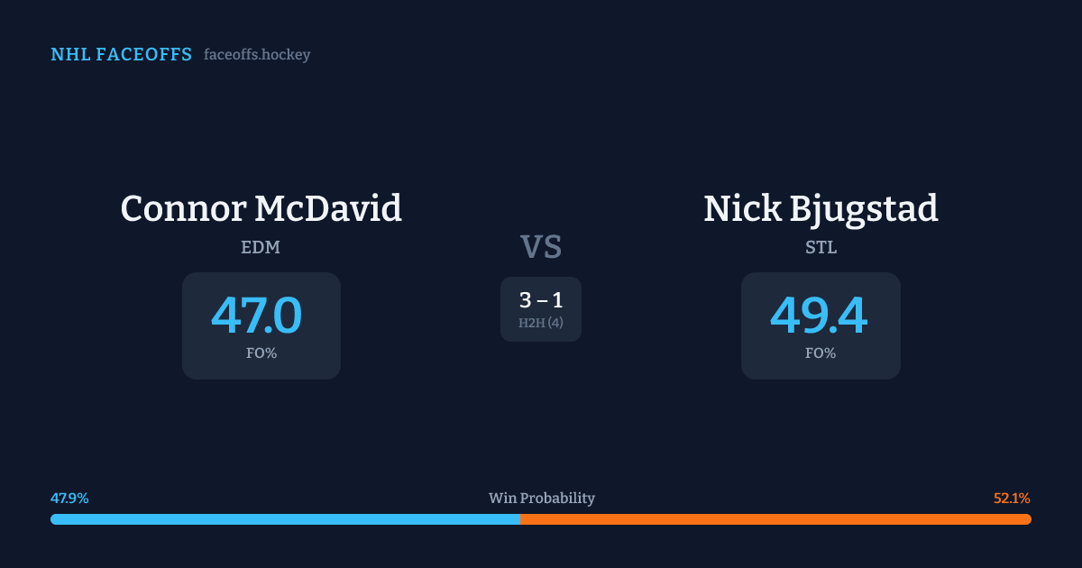 Connor McDavid vs Nick Bjugstad — Faceoff Head-to-Head