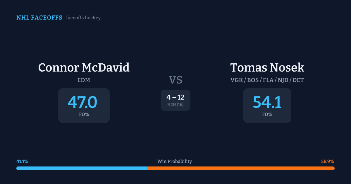 Connor McDavid vs Tomas Nosek — Faceoff Head-to-Head