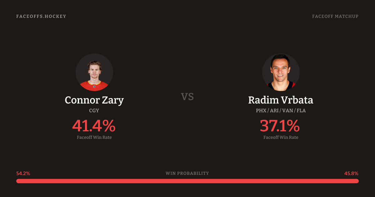 Connor Zary vs Radim Vrbata — Faceoff Head-to-Head