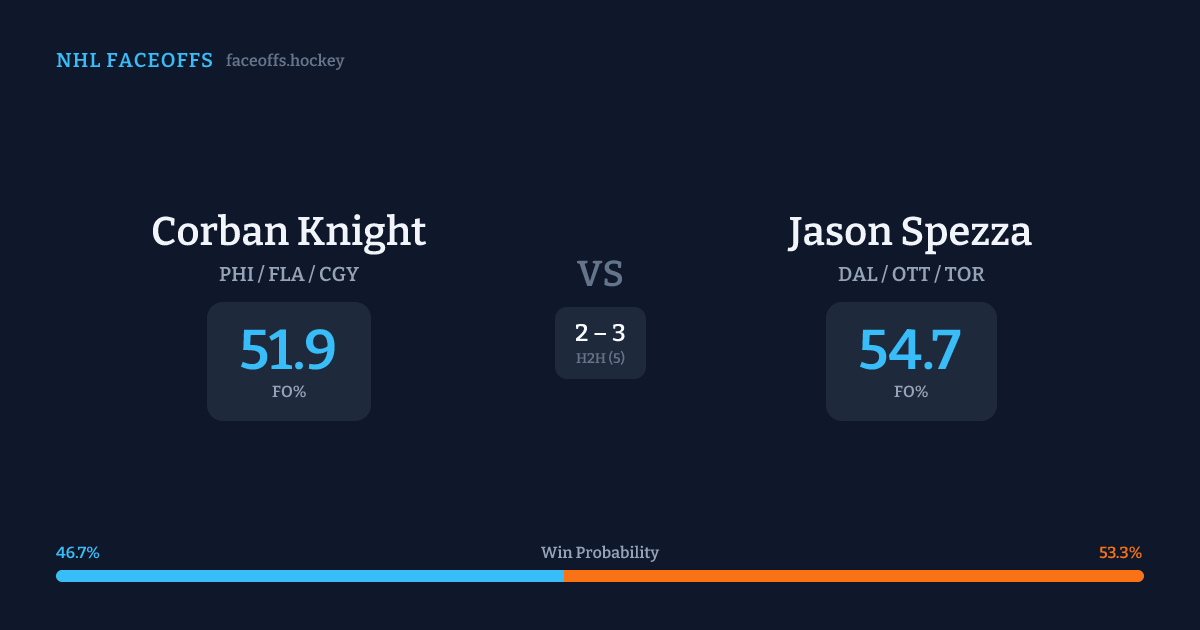 Corban Knight vs Jason Spezza — Faceoff Head-to-Head