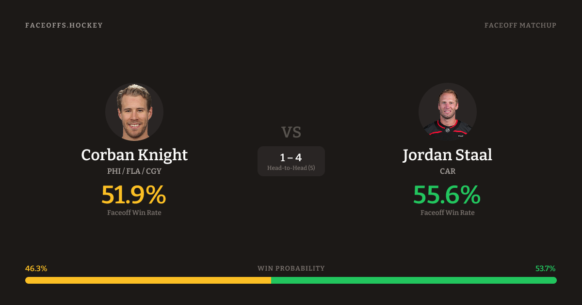 Corban Knight vs Jordan Staal — Faceoff Head-to-Head
