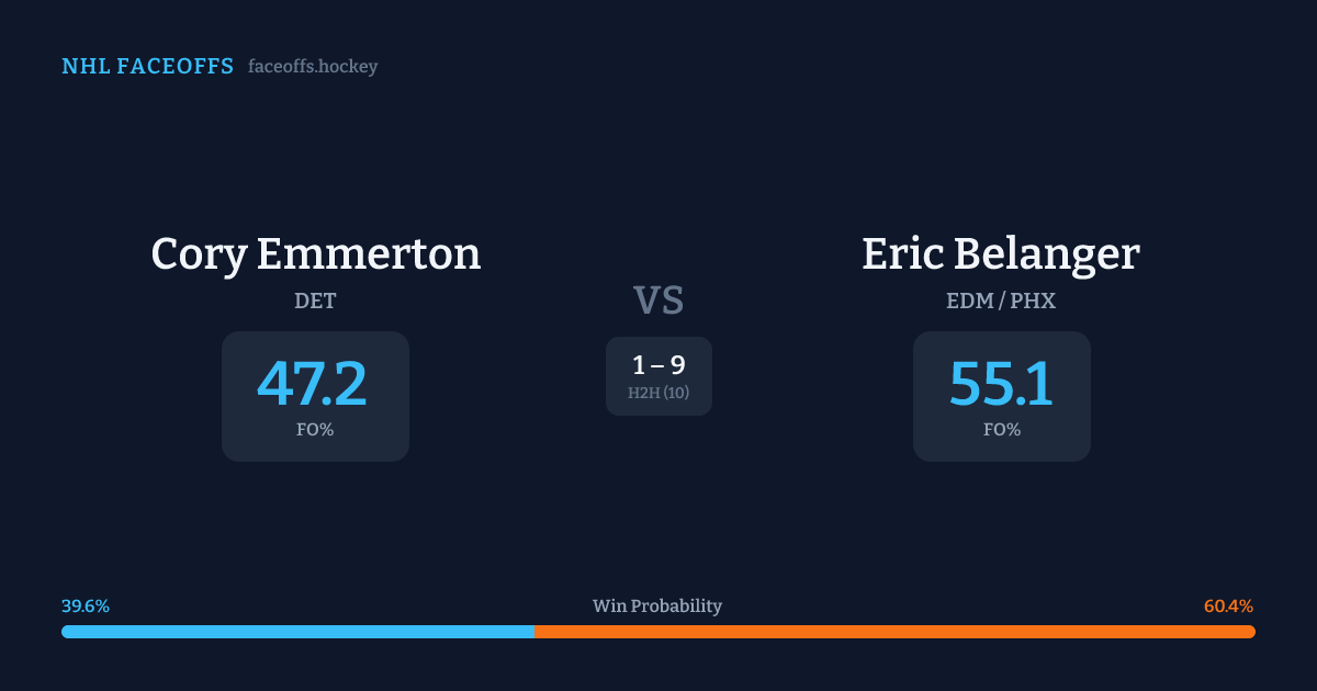 Cory Emmerton vs Eric Belanger — Faceoff Head-to-Head