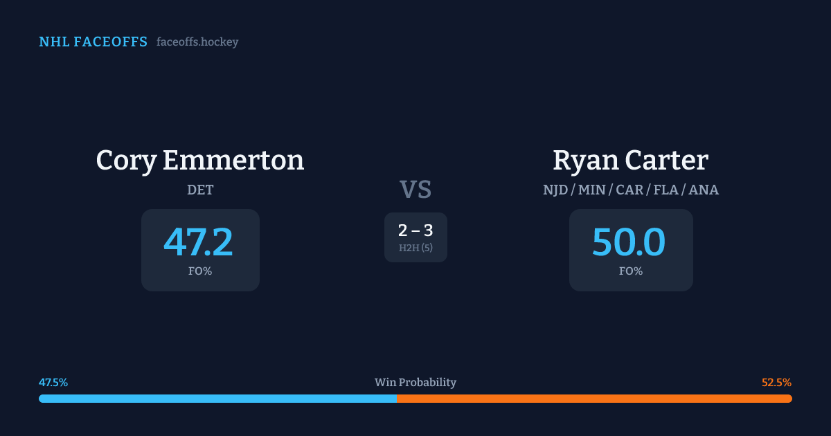 Cory Emmerton vs Ryan Carter — Faceoff Head-to-Head