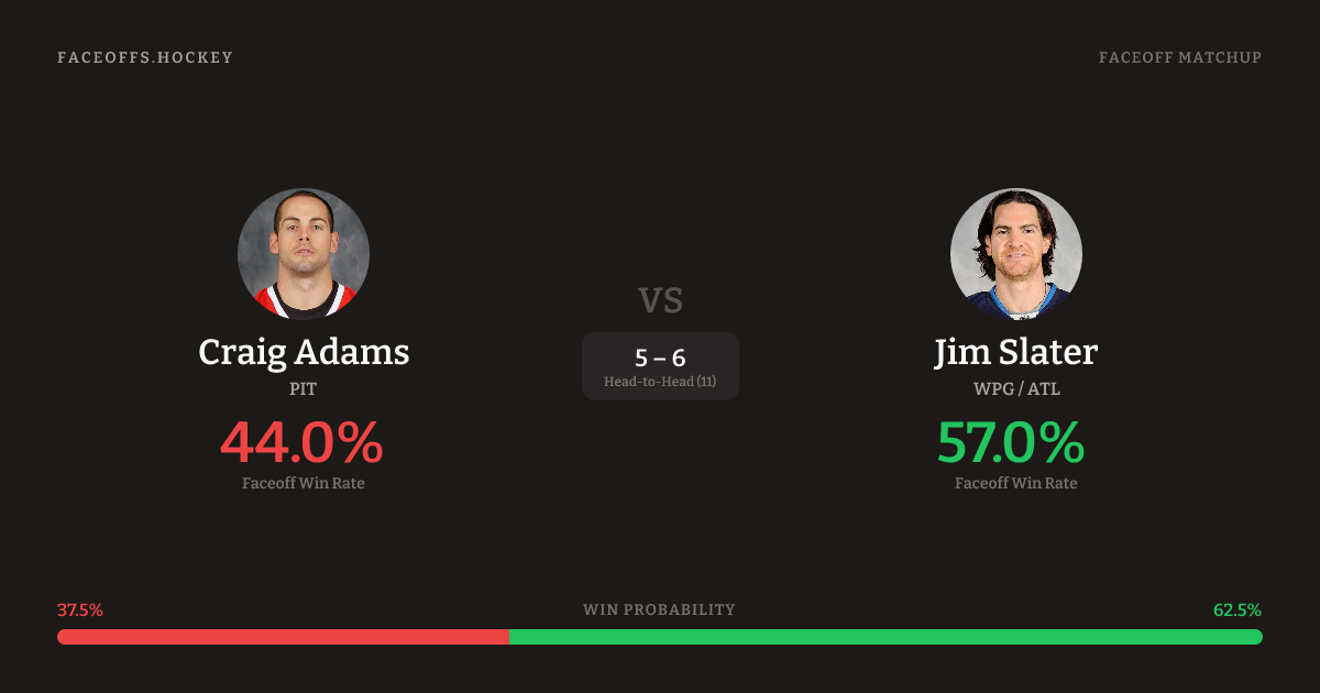 Craig Adams vs Jim Slater — Faceoff Head-to-Head