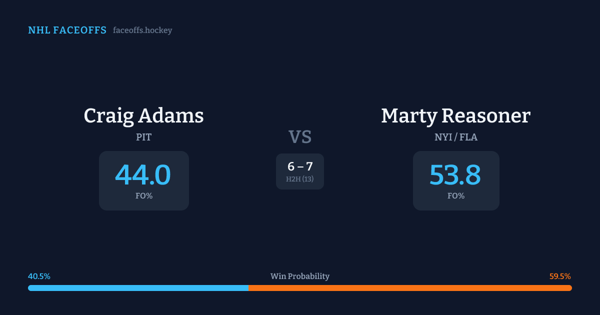 Craig Adams vs Marty Reasoner — Faceoff Head-to-Head