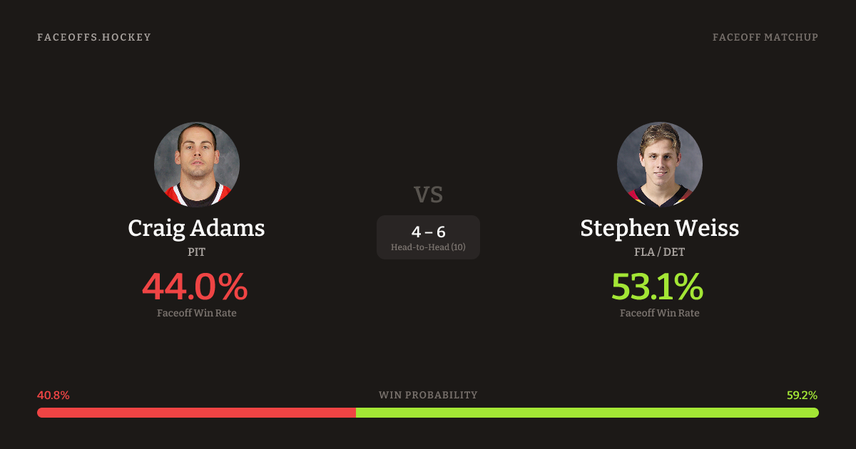 Craig Adams vs Stephen Weiss — Faceoff Head-to-Head