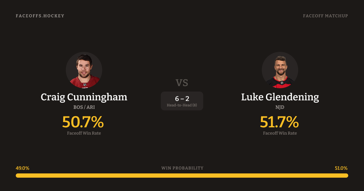 Craig Cunningham vs Luke Glendening — Faceoff Head-to-Head