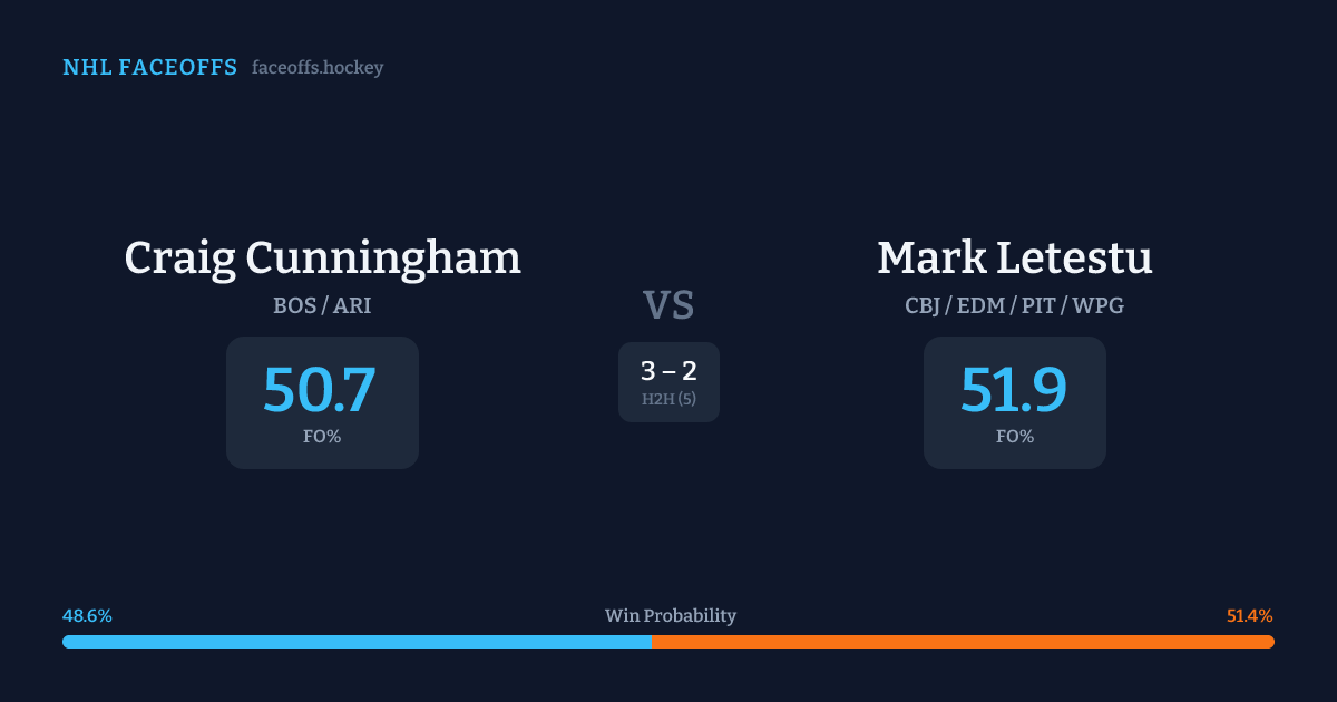 Craig Cunningham vs Mark Letestu — Faceoff Head-to-Head