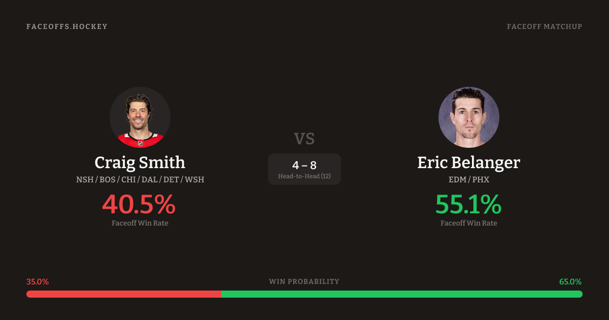 Craig Smith vs Eric Belanger — Faceoff Head-to-Head