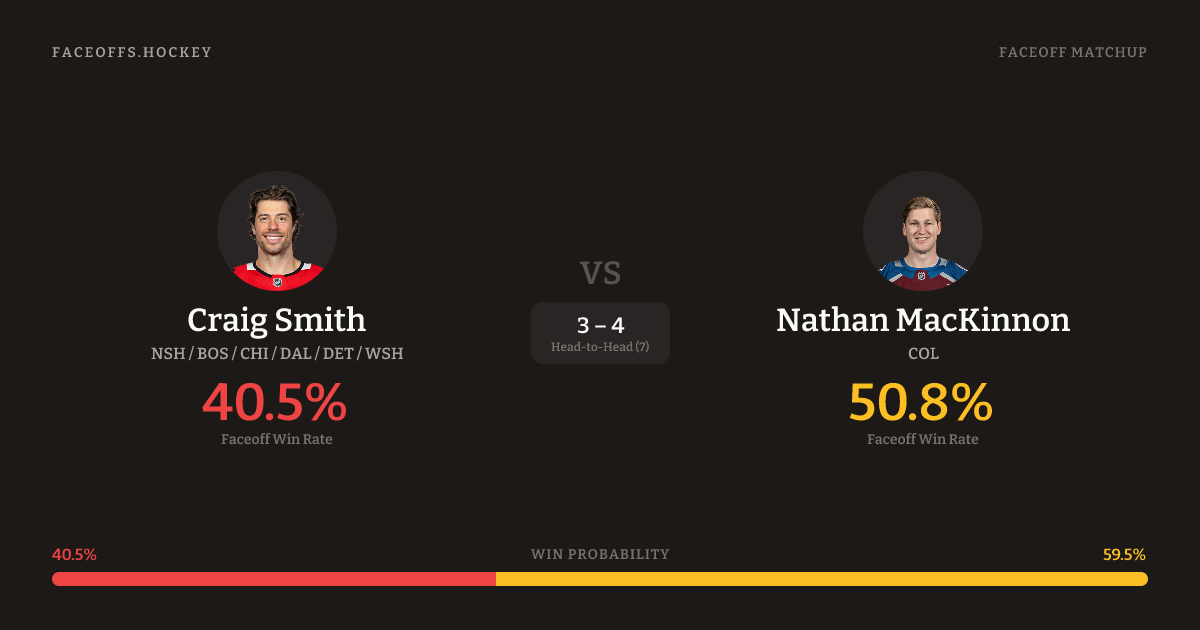Craig Smith vs Nathan MacKinnon — Faceoff Head-to-Head