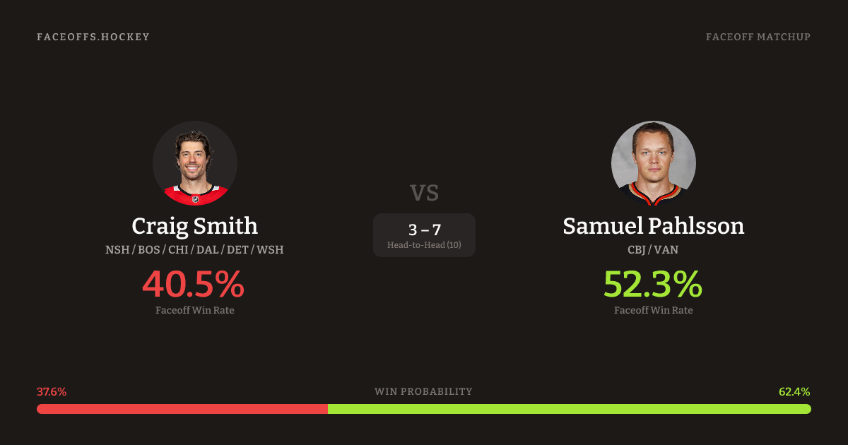 Craig Smith vs Samuel Pahlsson — Faceoff Head-to-Head