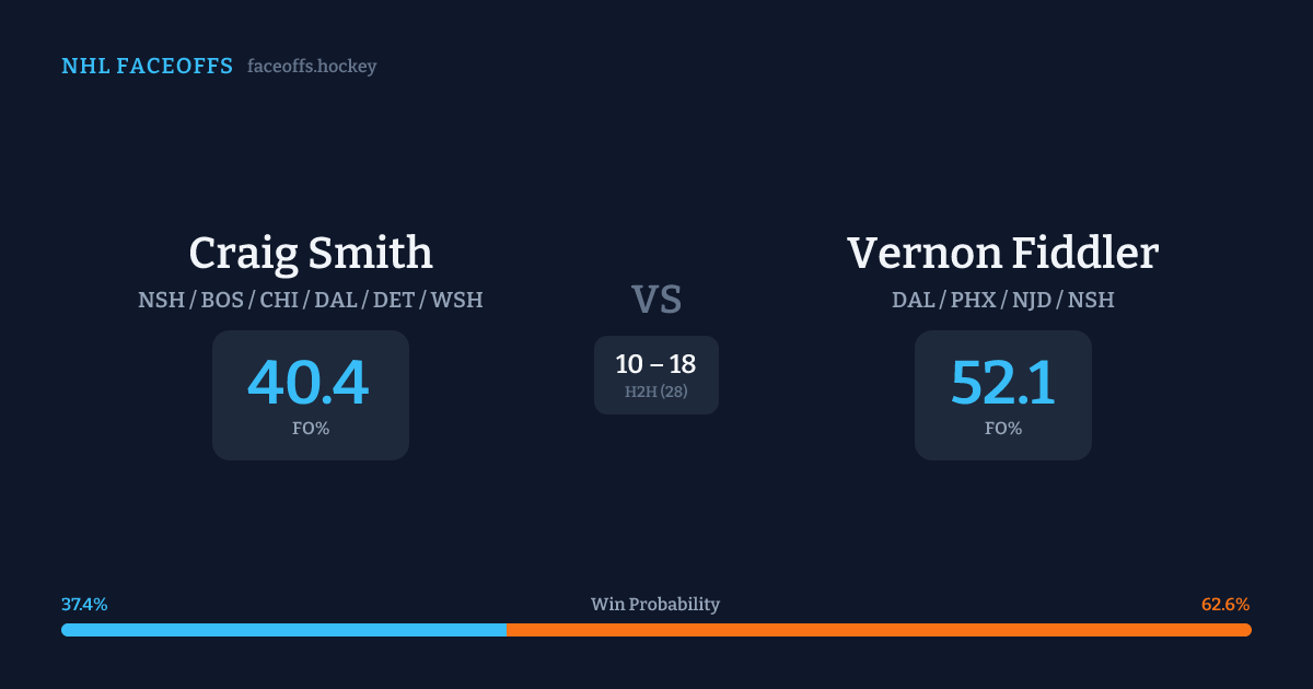 Craig Smith vs Vernon Fiddler — Faceoff Head-to-Head