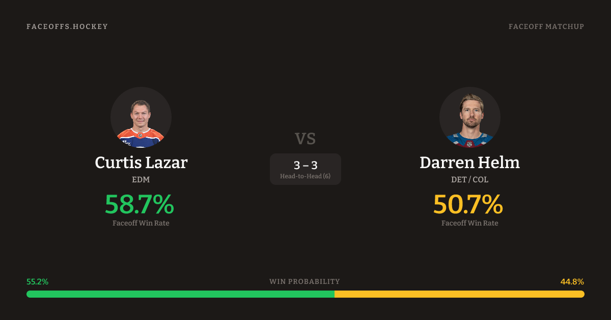 Curtis Lazar vs Darren Helm — Faceoff Head-to-Head
