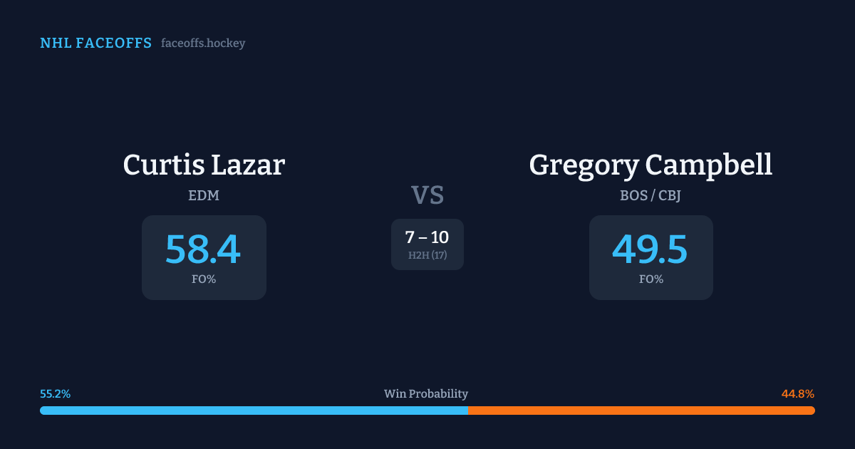 Curtis Lazar vs Gregory Campbell — Faceoff Head-to-Head