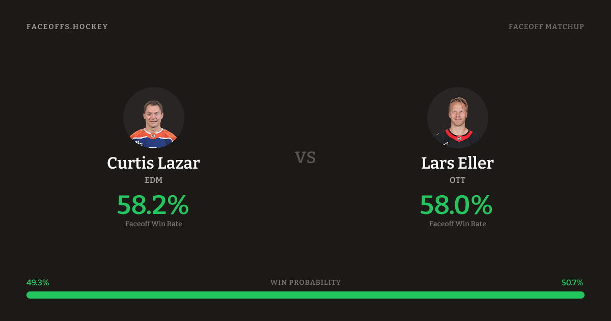 Lazar shoots right. Eller is 46.9% vs right-shot opponents (354).