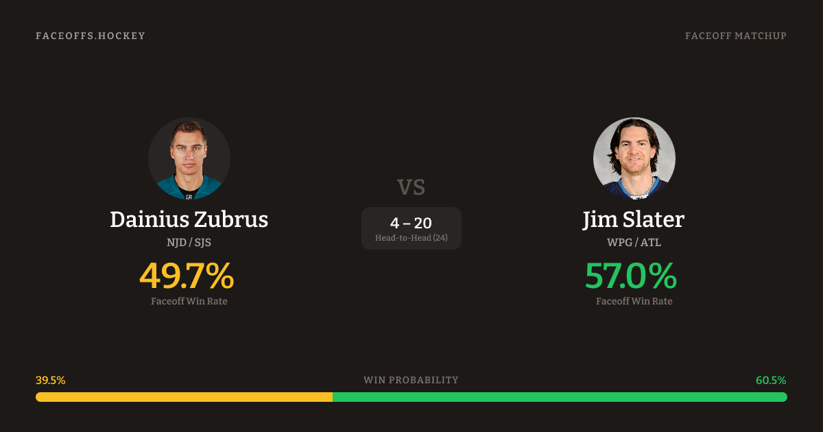 Dainius Zubrus vs Jim Slater — Faceoff Head-to-Head
