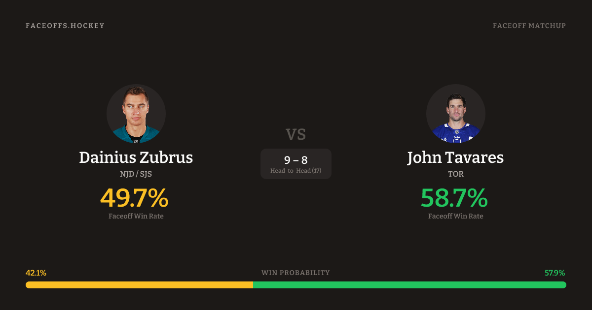 Dainius Zubrus vs John Tavares — Faceoff Head-to-Head