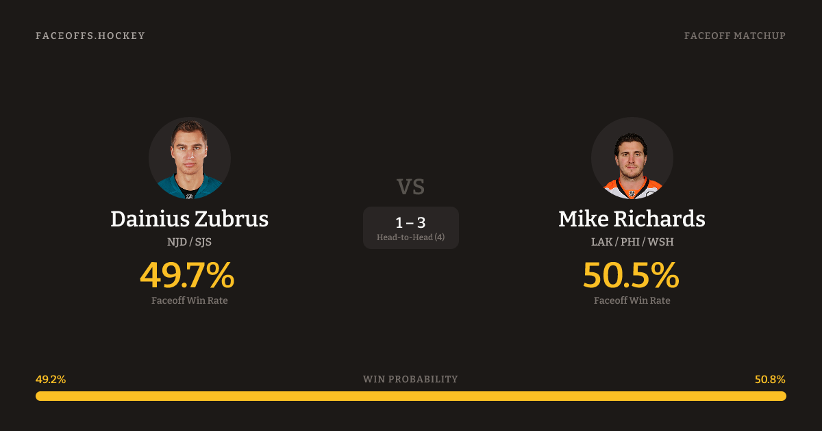 Dainius Zubrus vs Mike Richards — Faceoff Head-to-Head