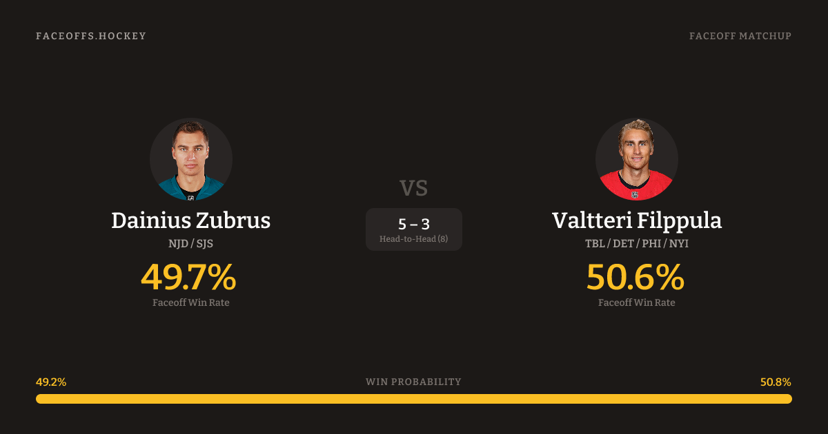 Dainius Zubrus vs Valtteri Filppula — Faceoff Head-to-Head