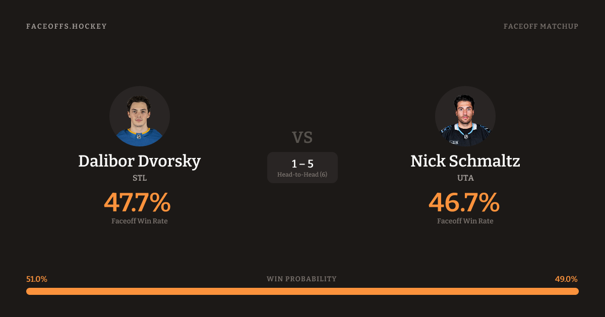 Dalibor Dvorsky vs Nick Schmaltz — Faceoff Head-to-Head