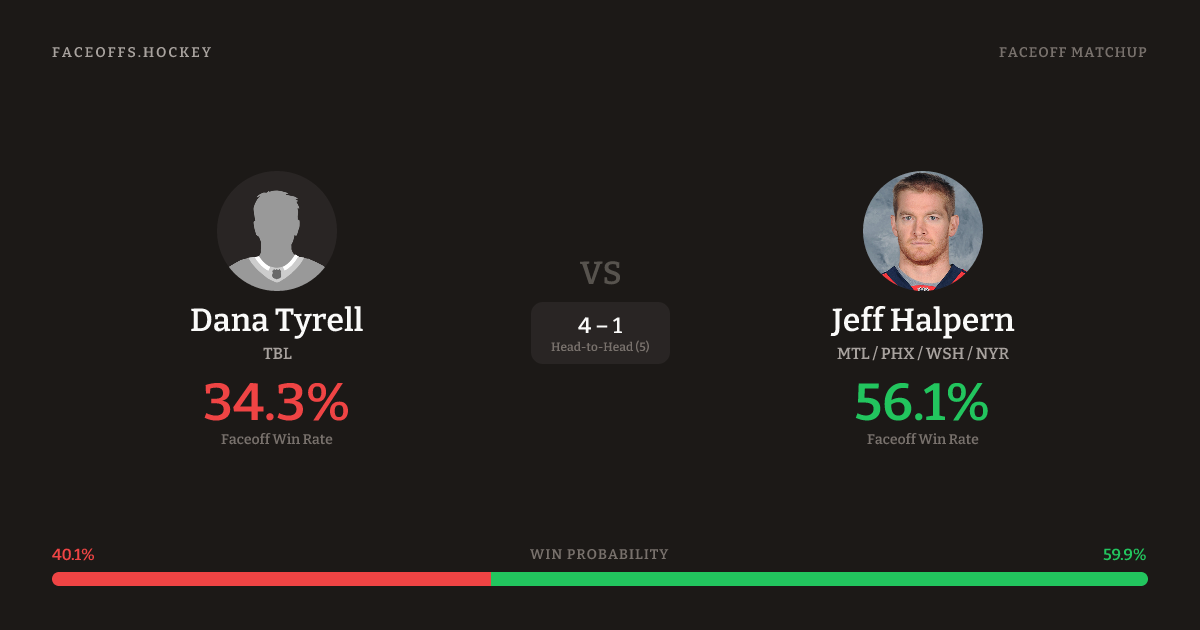 Dana Tyrell vs Jeff Halpern — Faceoff Head-to-Head
