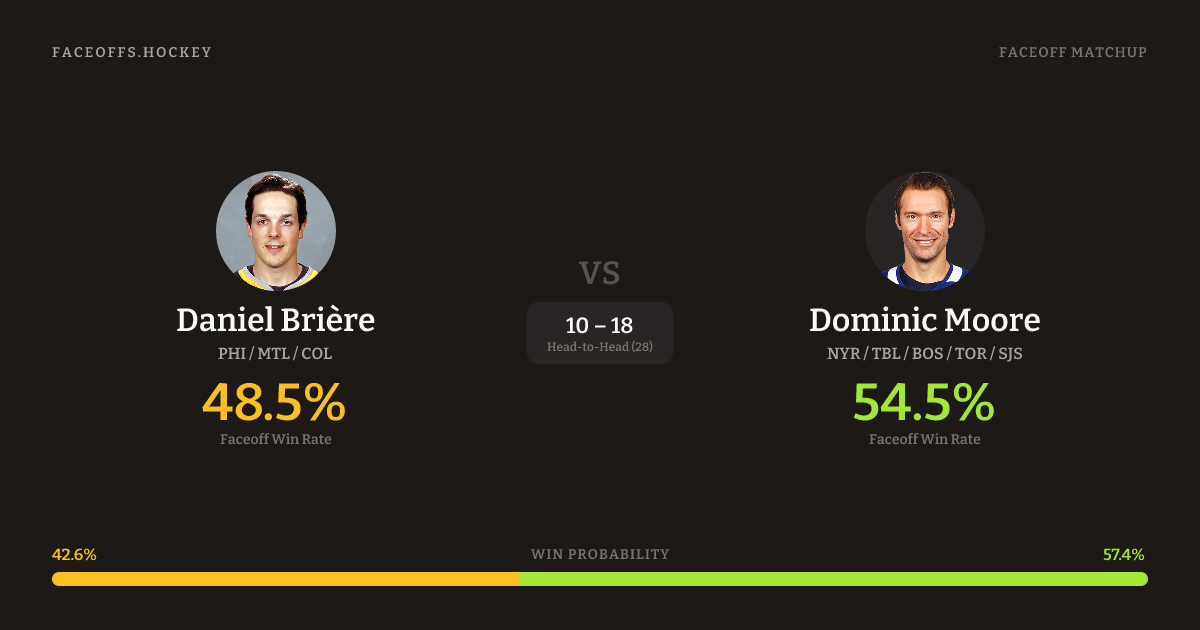 Daniel Brière vs Dominic Moore — Faceoff Head-to-Head
