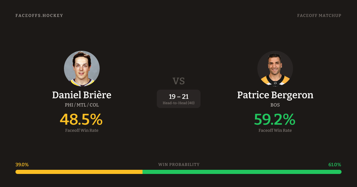 Daniel Brière vs Patrice Bergeron — Faceoff Head-to-Head