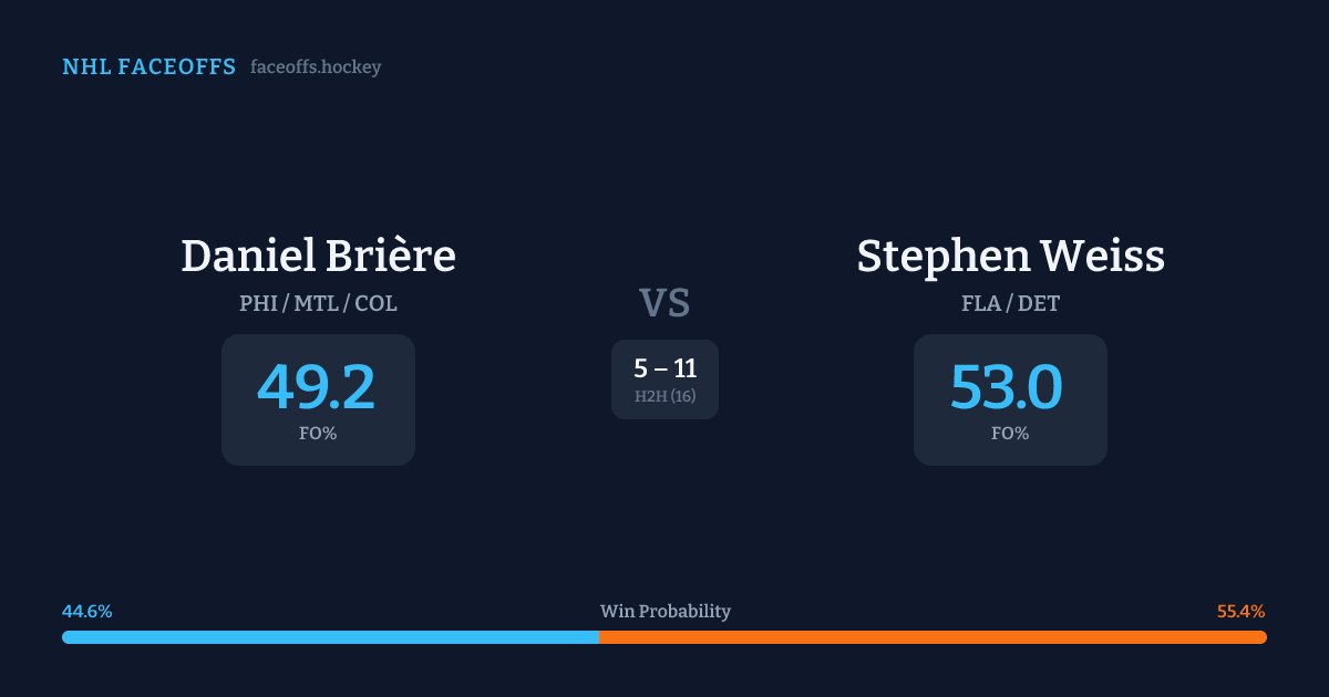 Daniel Brière vs Stephen Weiss — Faceoff Head-to-Head