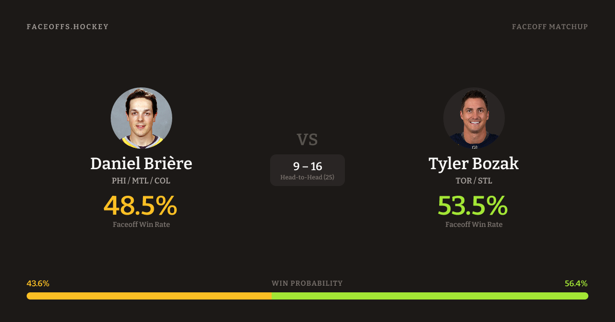 Daniel Brière vs Tyler Bozak — Faceoff Head-to-Head