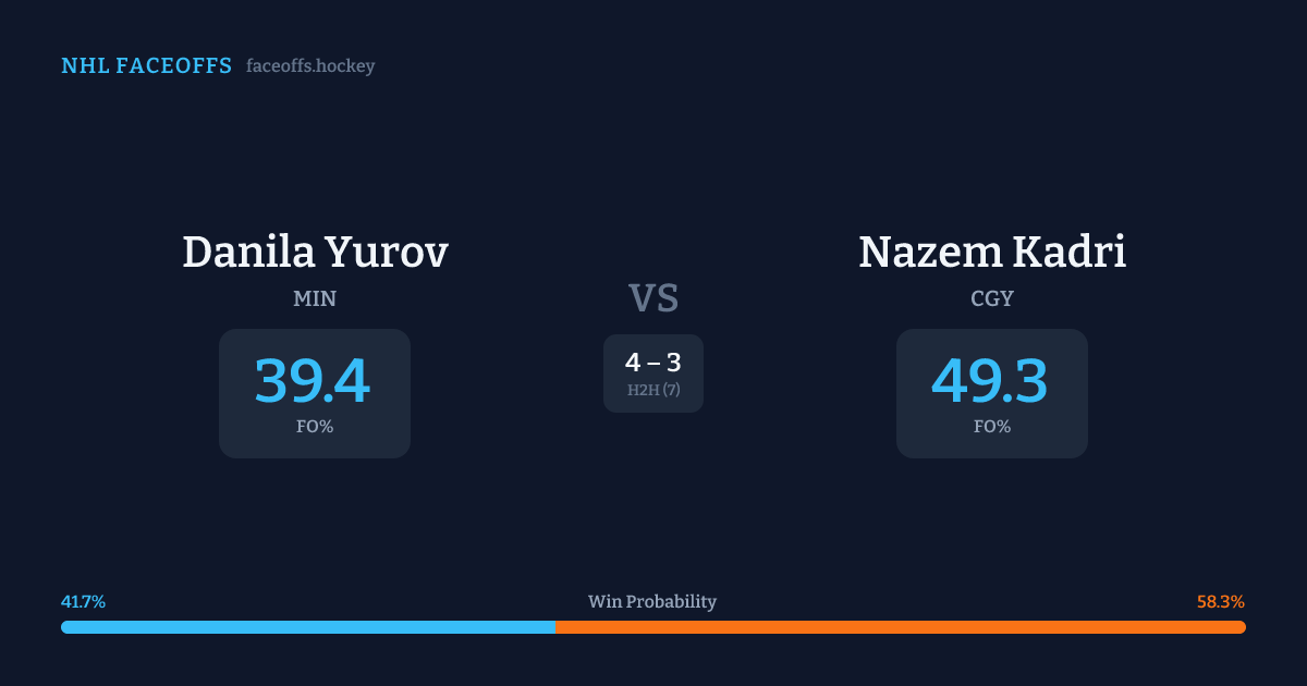 Danila Yurov vs Nazem Kadri — Faceoff Head-to-Head