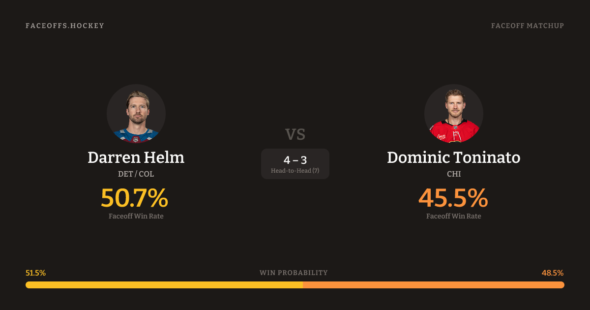 Darren Helm vs Dominic Toninato — Faceoff Head-to-Head