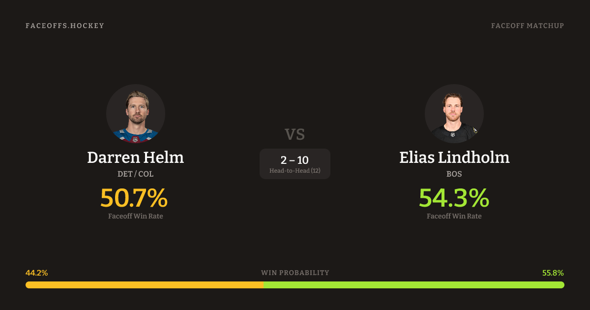 Darren Helm vs Elias Lindholm — Faceoff Head-to-Head