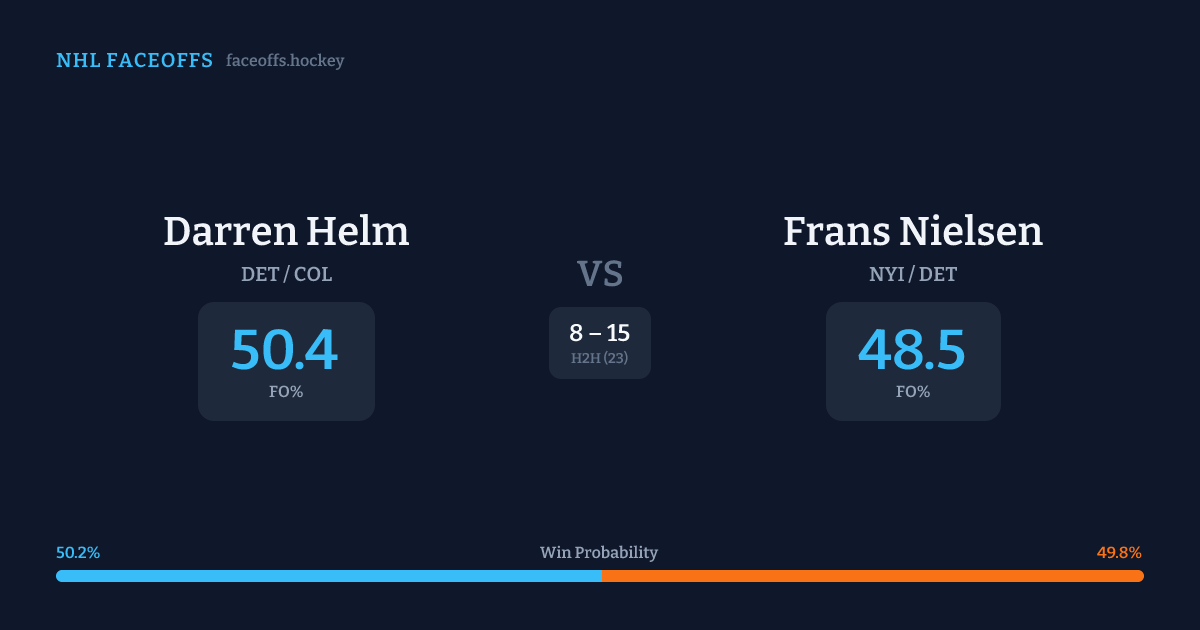 Darren Helm vs Frans Nielsen — Faceoff Head-to-Head