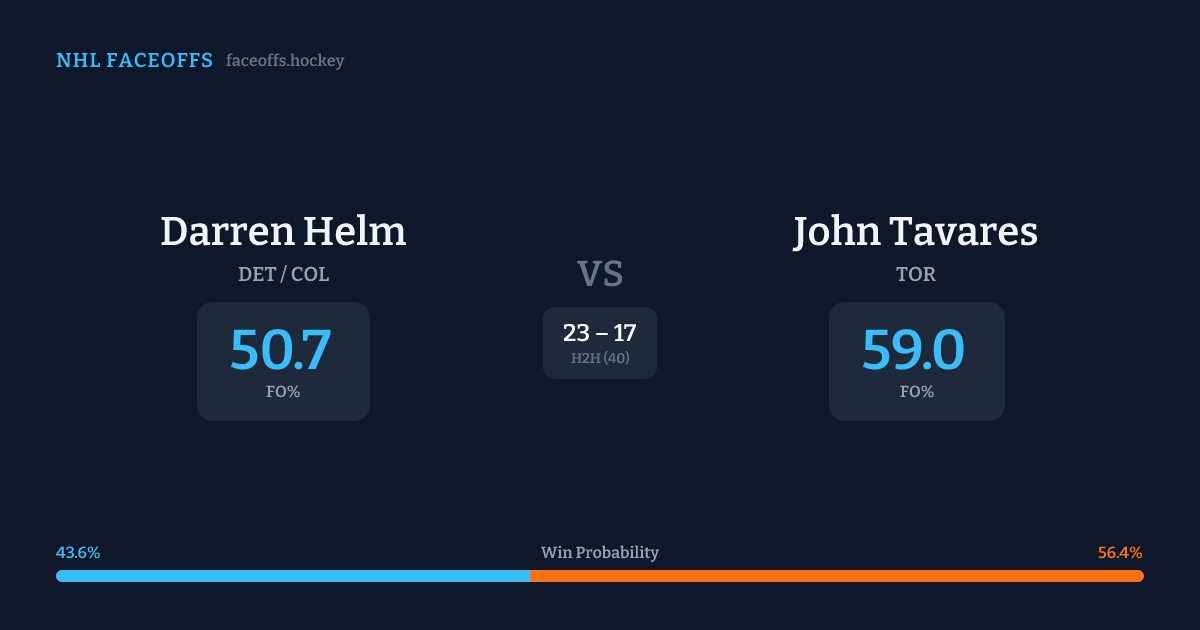 Darren Helm vs John Tavares — Faceoff Head-to-Head