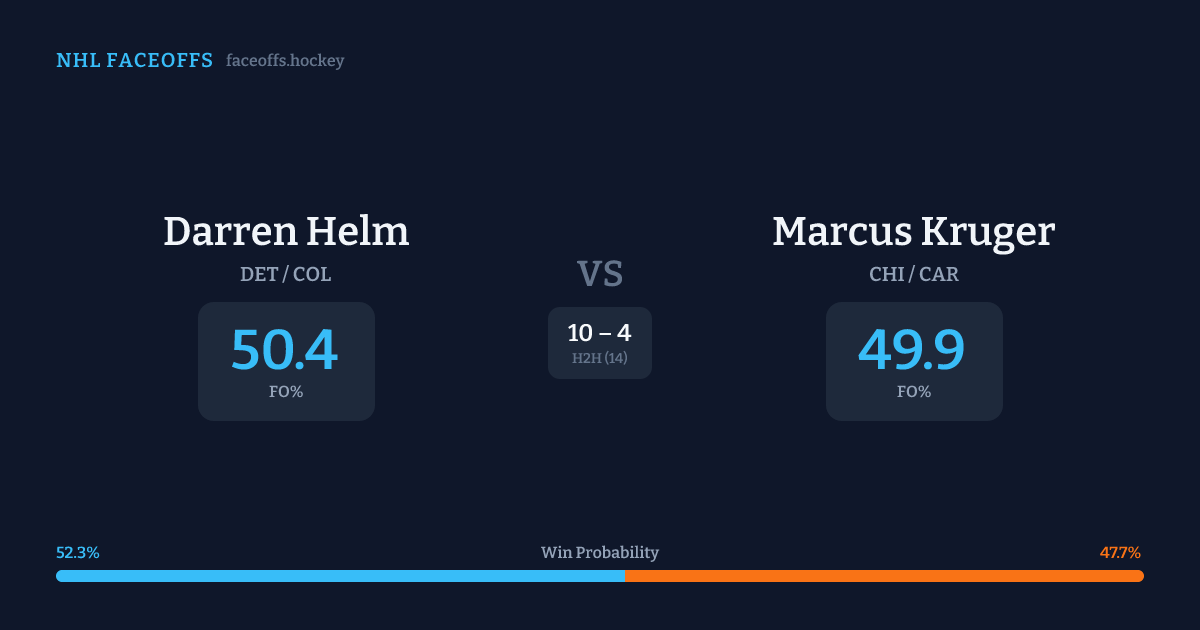 Darren Helm vs Marcus Kruger — Faceoff Head-to-Head
