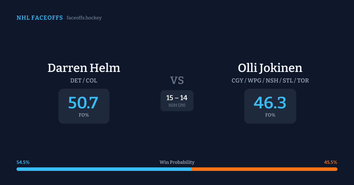 Darren Helm vs Olli Jokinen — Faceoff Head-to-Head