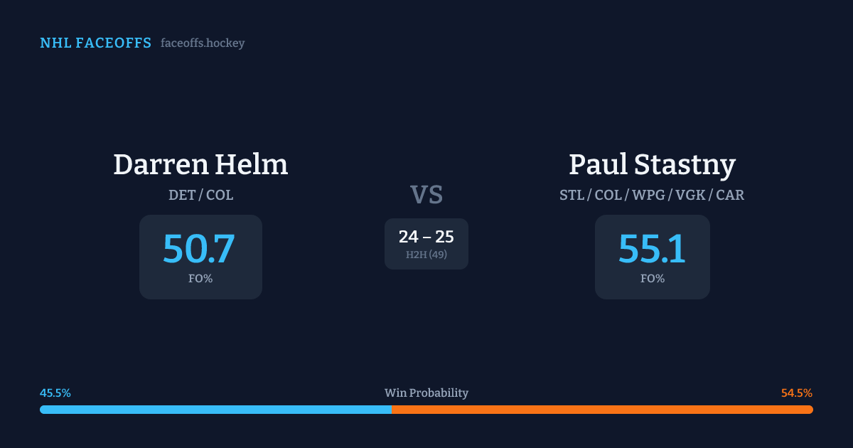 Darren Helm vs Paul Stastny — Faceoff Head-to-Head