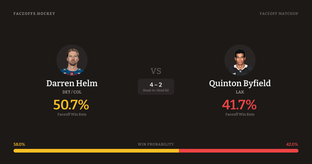 Darren Helm vs Quinton Byfield — Faceoff Head-to-Head