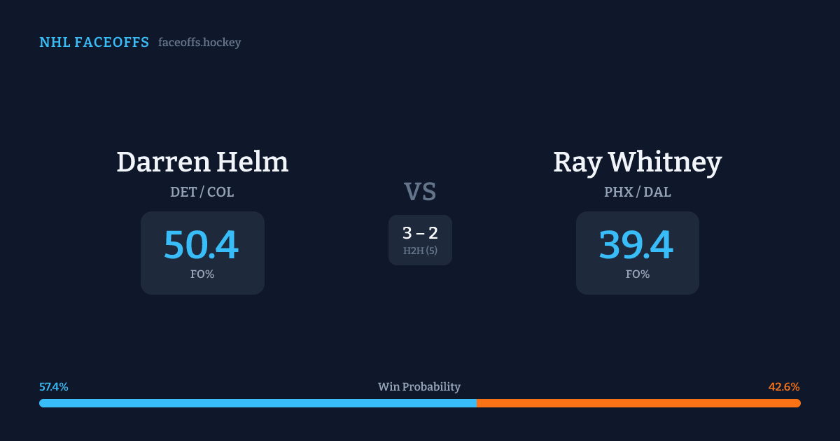 Darren Helm vs Ray Whitney — Faceoff Head-to-Head