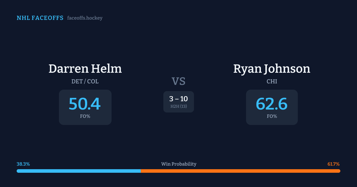 Darren Helm vs Ryan Johnson — Faceoff Head-to-Head