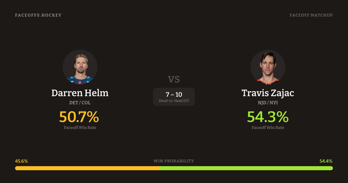 Darren Helm vs Travis Zajac — Faceoff Head-to-Head